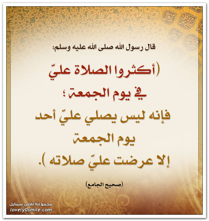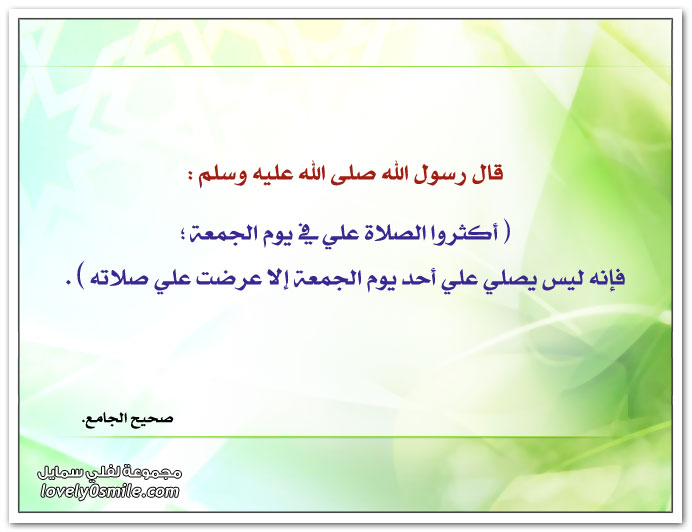 أكثروا الصلاة علي في يوم الجمعة فإنه ليس يصلي علي أحد لفلي سمايل