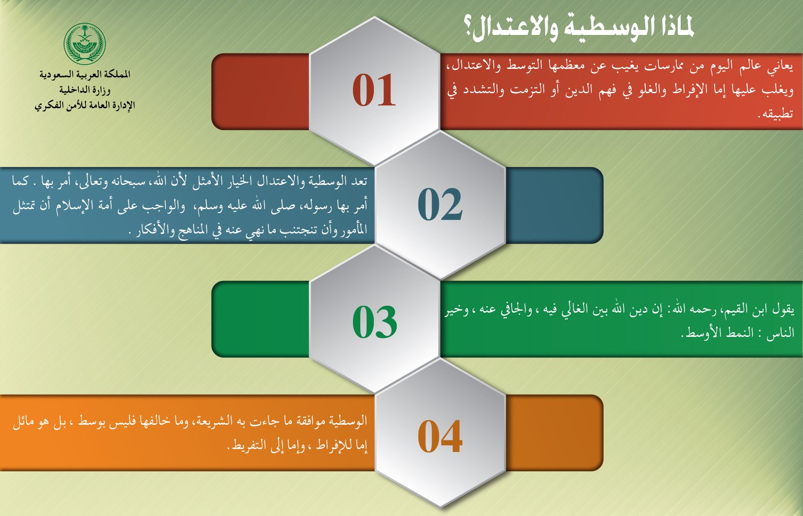 الاعتدال والوسطية في الاسلام. والوسطية أحد المعالم الأساسية التي ميز الله بها أمة الإسلام عن غيرها وكذل ك جعلناكم أم ة وسطا ل تكونوا ش هداء على الناس والإسلام ينفر أشد النفور من التشدد والغلو والتطرف ويحذر منه أشد التحذير قال النبي صلى الله عليه وسلم. محاضرة ألقيت في كلية الشريعة. الوسطية في الإسلام ما هي الوسطية في الإسلام أما بعد فالوسط هو الخيار والأعلى من الشيء والوسط من كل شيء أعدله وأصل هذا أن خير الأشياء أوساطها وأن الغلو والتقصير مذمومان قال الزمخشري وقيل للخيار وسط لأن الأطراف يتسارع. فإن الفرقة الناجية أهل السنة والجماعة يؤمنون بما أخبر الله به في كتابه من غير تحريف ولا تعطيل ولا تكييف ولا تمثيل بل هم وسط في ف رق الأمة كما أن الأمة هي الوسط في الأمم.