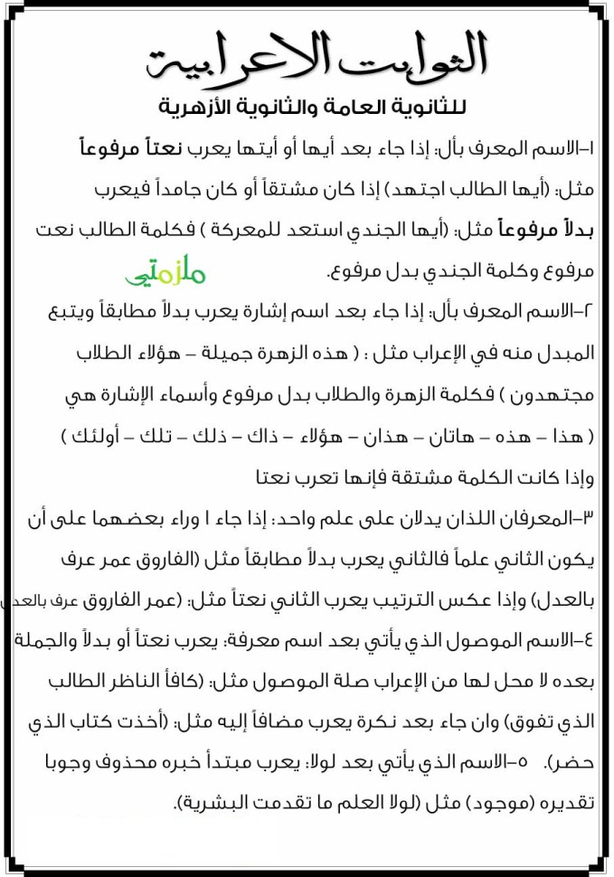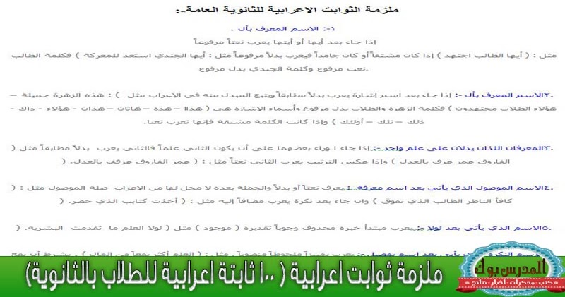 ملزمة الثوابت الاعرابية الخاصة بالثانوية العامة ملزمتي