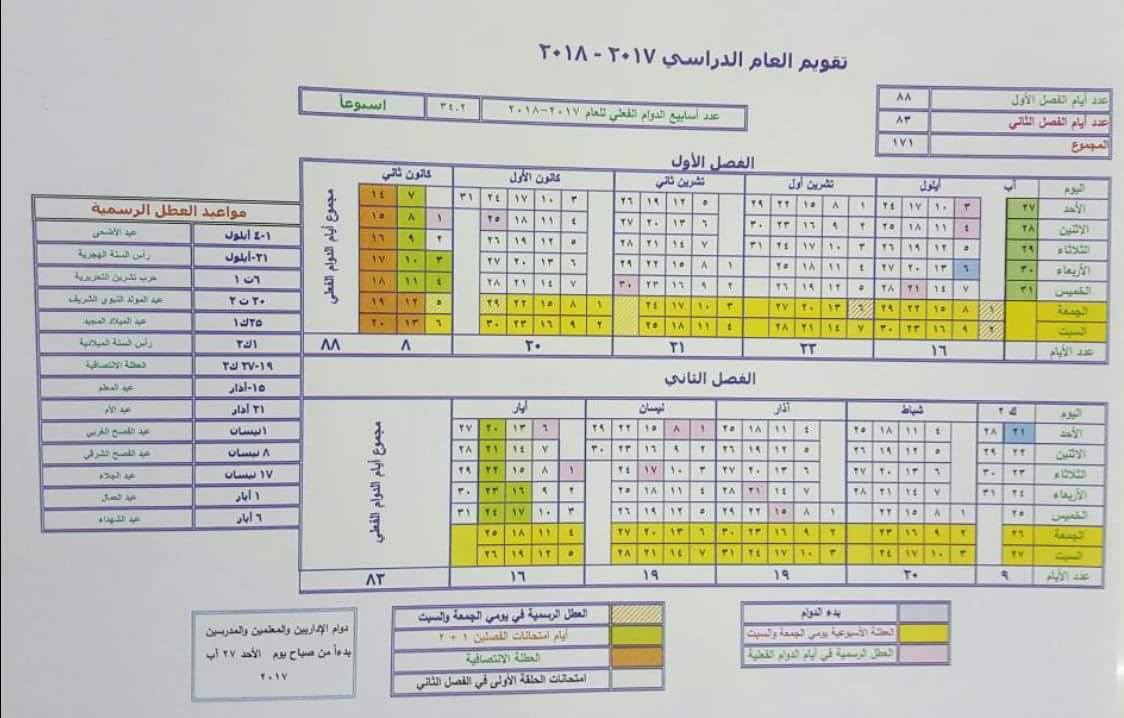 يبدأ الموسم الدراسي الجديد لموسم عام 1438 1439 هـ 2017 2018 يوم الأحد الموافق 19 12 1438 هـ 10 9 2017 م. جدول التقويم الدراسي بالكويت 2017 2018. دوام اعضاء الهيئة.
