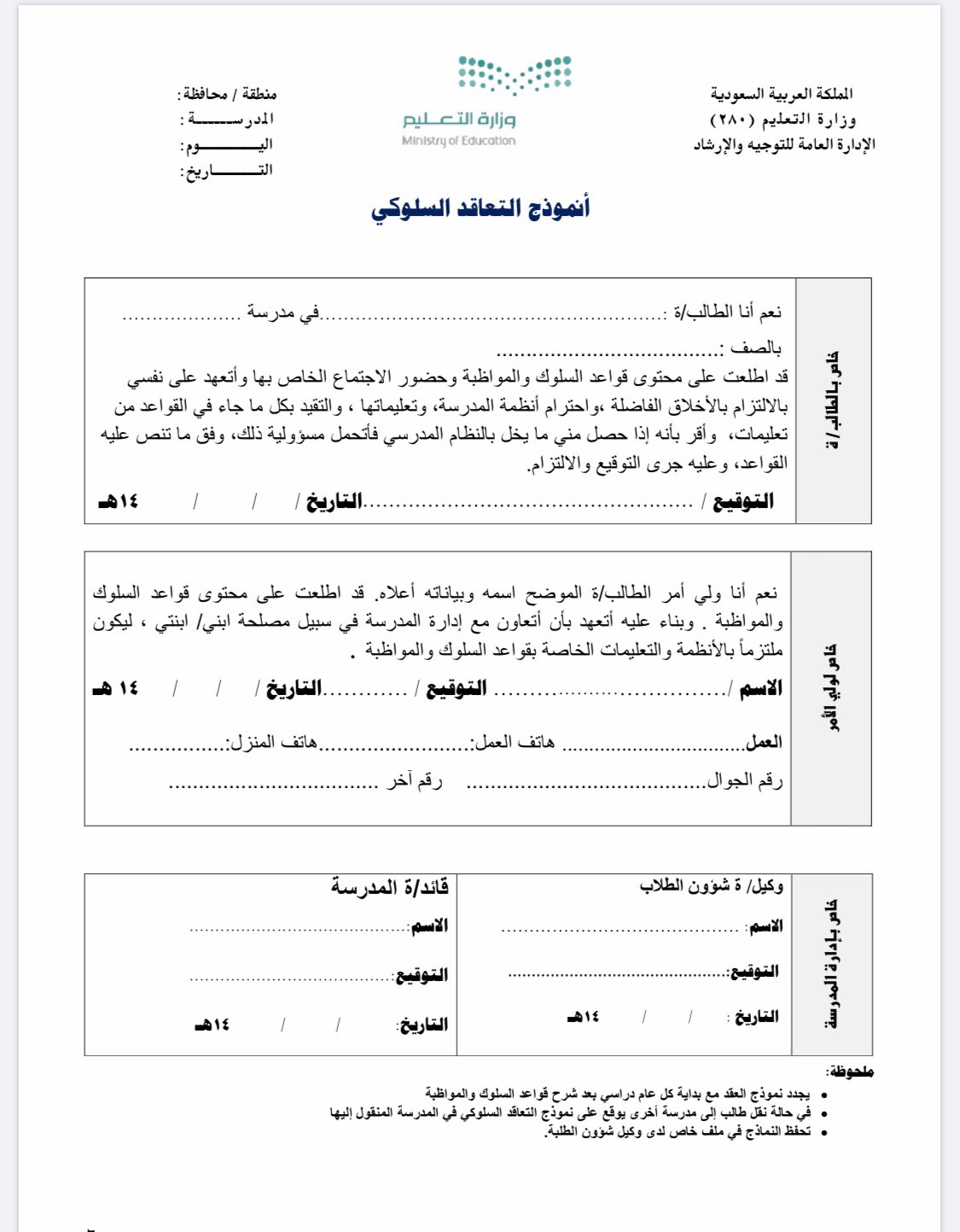 العقد السلوكي بين المعلم والطالب. أحمد العيسى التي تهدف إلى تعزيز هيبة. العقد السلوكي بين المعلم والطالب همسات مرئية 1 للأستاذ الدكتور مرعي الحمراني يوتيوب فيديو تغير سلوك الطالب من السلبي الى الايجابي. من الخطوات الإيجابية لوزارة التعليم بقيادة د. عقد بين اتفاق بين الطالبة والمعلمة تجربة جديدة إن التربية والتعليم لا تحقق النجاح المطلوب إلا إذا استطعنا أن نوجد رغبة داخلية لدى المعني بها أقصد.
