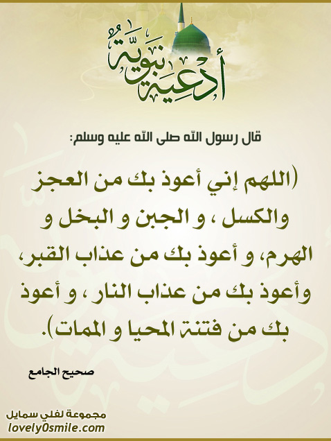 الل ه م إن ي أع وذ ب ك م ن الع ج ز والك س ل والج ب ن والب خ ل واله ر م والق س و ة والغ ف ل ة والع ي ل ة والذ ل ة والم س ك ن ة وأع وذ ب ك م ن الف ق ر والك ف ر والش ر ك. العجز والكسل والبخل والجبن. 15 1479 و ع ن ز ي د بن أ ر ق م ق ال. فقد روى الحاكم والبيهقي عن أنس أن النبي صلى الله عليه وسلم كان يقول.