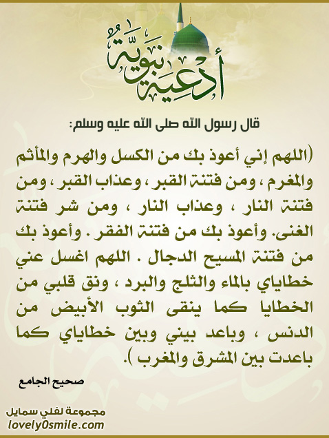 اللهم إني أعوذ بك من جار السوء اللهم إني أعوذ بك من الهم والحزن والعجز والكسل لفلي سمايل