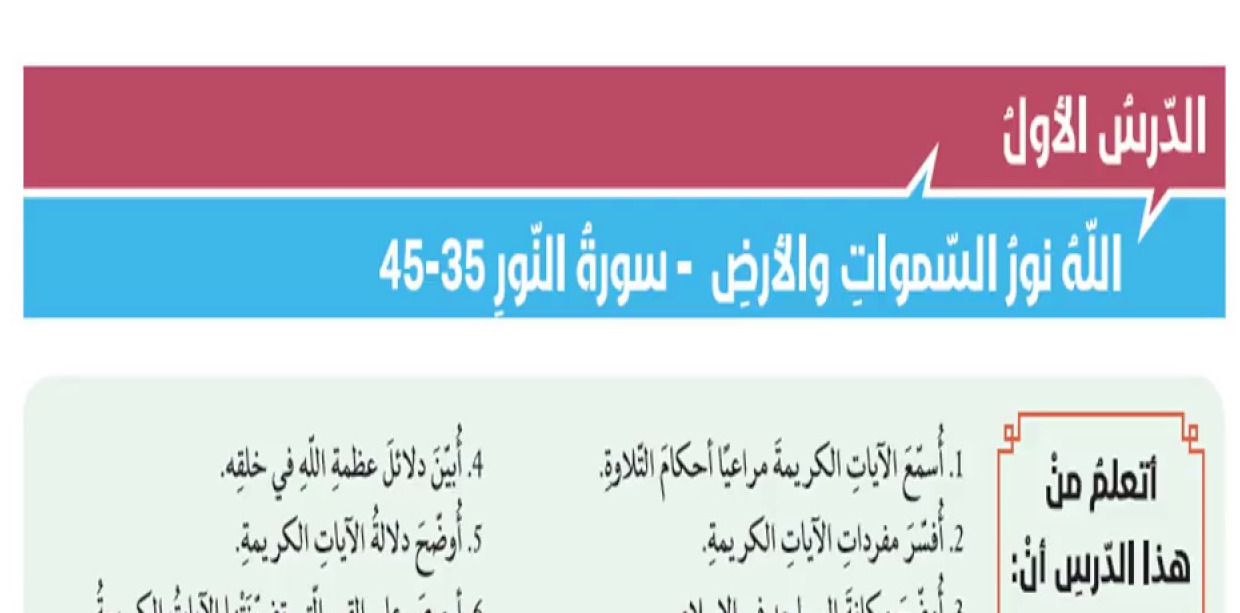 حل درس الله نور السموات والأرض تربية إسلامية مدرستي الامارتية